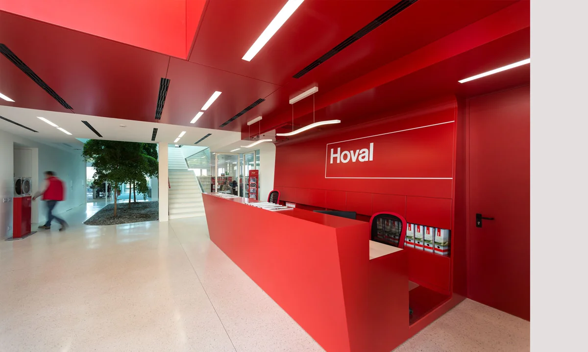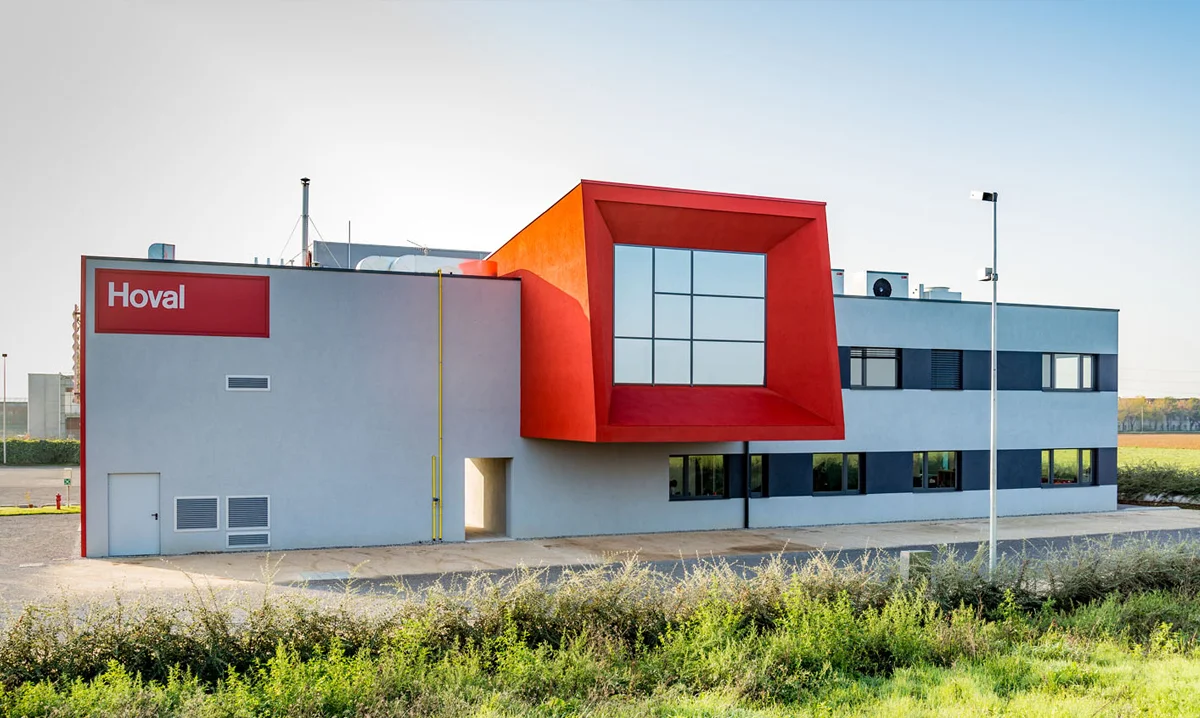 in collaborazione con gli architetti SOLARRAUM viene vinto il concorso per la nuova sede HOVAL italia. l’edificio viene realizzato in soli 7 mesi in collaborazione con la ditta WOLFSYSTEM WOLFHAUS.