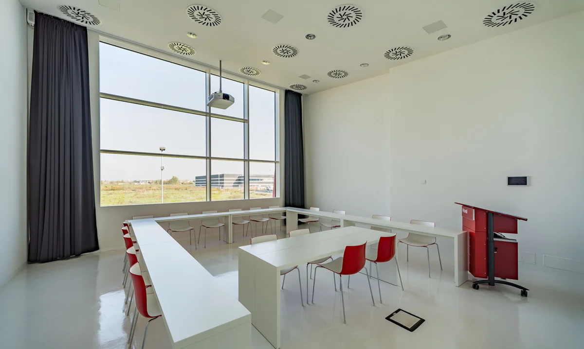 in zusammenarbeit mit architekten SOLARRAUM wird der 1. preis des wettbewerbs für das neue firmengelände HOVAL italia gewonnen. das gebäude wird in einer bauzeit von nur 7 monaten in zusammenarbeit mit der firma WOLFSYSTEM WOLFHAUS fertiggestellt.